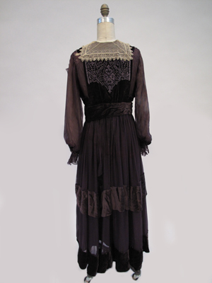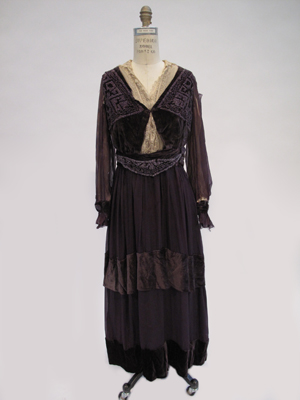 1913 -1913 Eggplant womans evening-dress [Silk Velvet and Chiffon]